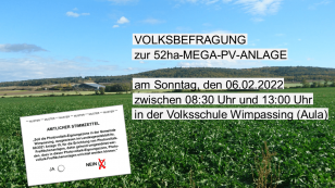 Wir haben in den letzten Monaten gemeinsam mit Ihnen hart dafür gekämpft, dass die Volksbefragung am 06. Februar 2022 stattfinden kann. Diese wichtige Entscheidung liegt nun in den Händen der Wimpassinger Bevölkerung!